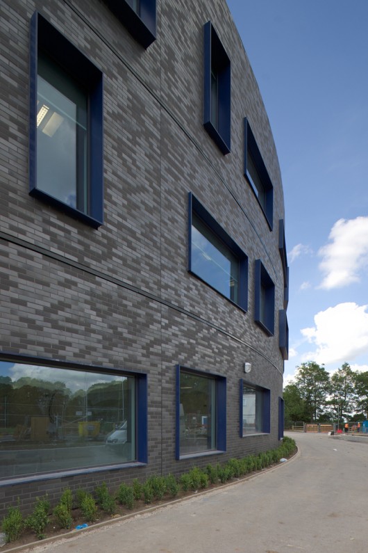 The design was in a sensitive planning area with a curved plan form minimizing the visual impact of the building from the road. The external treatment of glazed brick and render has been composed to accentuate the circular form and is punctuated by picture windows which vary from classroom to classroom, offering variation to the learning spaces throughout the day.